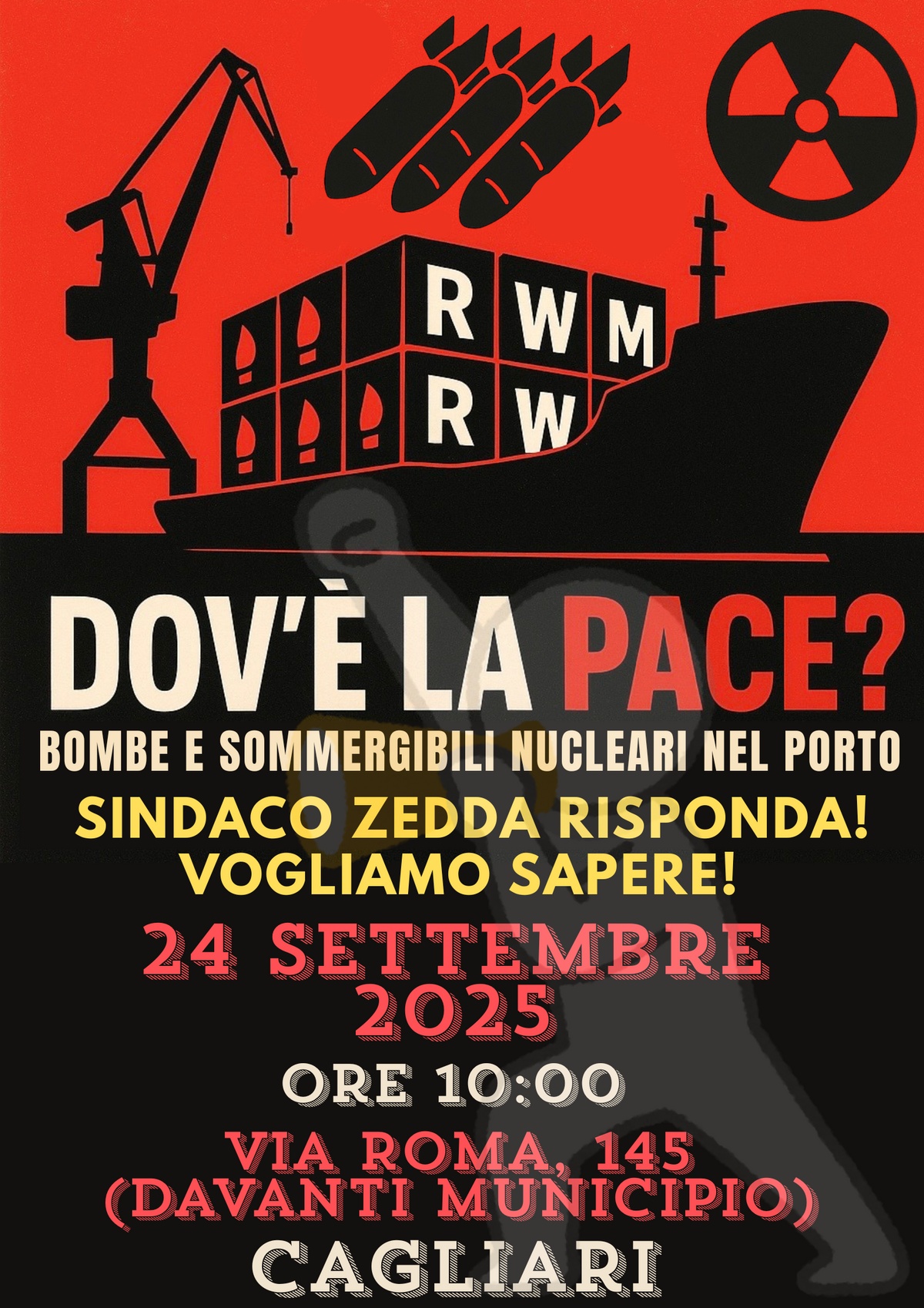 I promotori denunciano il transito sul territorio cittadino di bombe prodotte dalla RWM destinate a paesi in guerra e la mancanza di un Piano di Emergenza per il porto nucleare. โCome puรฒ Cagliari definirsi โCittร della Paceโ alla luce di questi fatti?โ, chiedono.