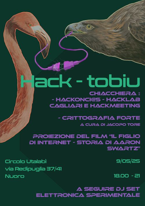 Hack-tobiu Friday, May 09, 06:00 PM-11:00 PM Friday 9 May 23:00 Circolo Utalabì via Redipuglia 37/41 FilmHacklabHackmeeting